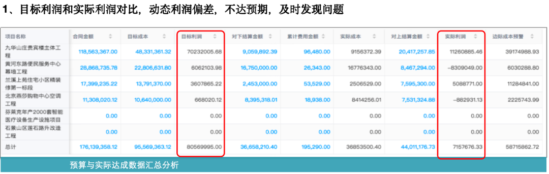 通過紅圈系統(tǒng),在過程中可以實(shí)時(shí)看到人、材、機(jī)等各項(xiàng)成本發(fā)生是否合理, 項(xiàng)目利潤是否達(dá)預(yù)期,過程中出現(xiàn)風(fēng)險(xiǎn)能夠及時(shí)解決和控制,后期也可以對單個(gè)項(xiàng)目去做成本分析。