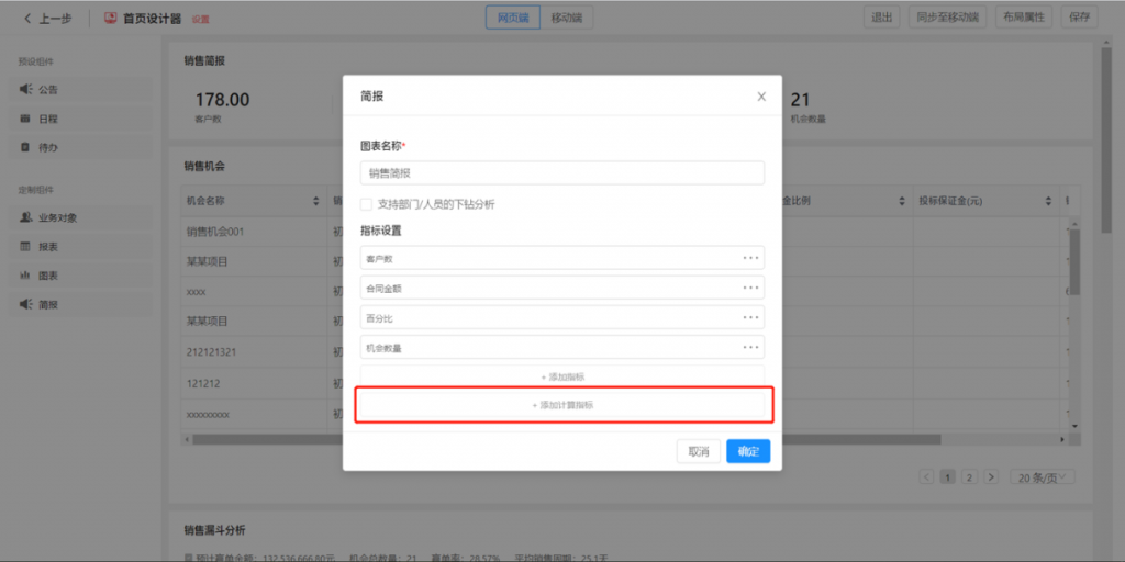 計算指標(biāo):首頁簡報組件,可支持指標(biāo)間進行基礎(chǔ)四則運算,生成計算指標(biāo)