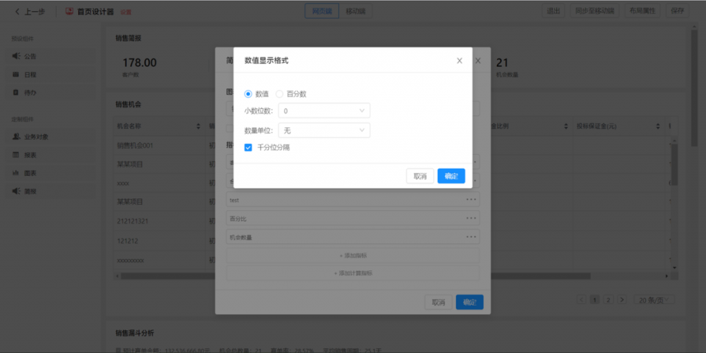 數(shù)值顯示格式:指標(biāo)都支持數(shù)值顯示格式的設(shè)置,可設(shè)置單位、小數(shù)位數(shù)、百分比等