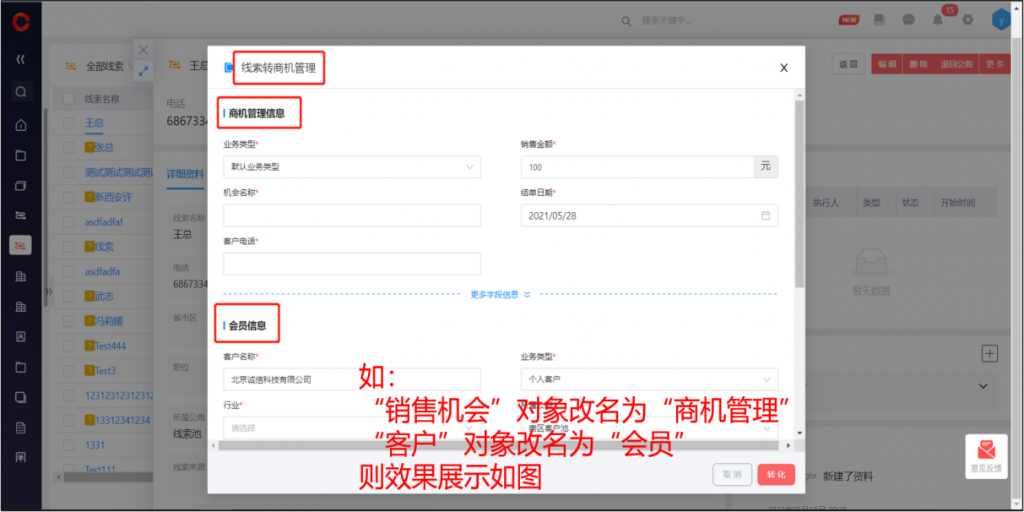 線索轉(zhuǎn)化頁面的標(biāo)題和分組標(biāo)題,按轉(zhuǎn)化的對象名稱來變化
