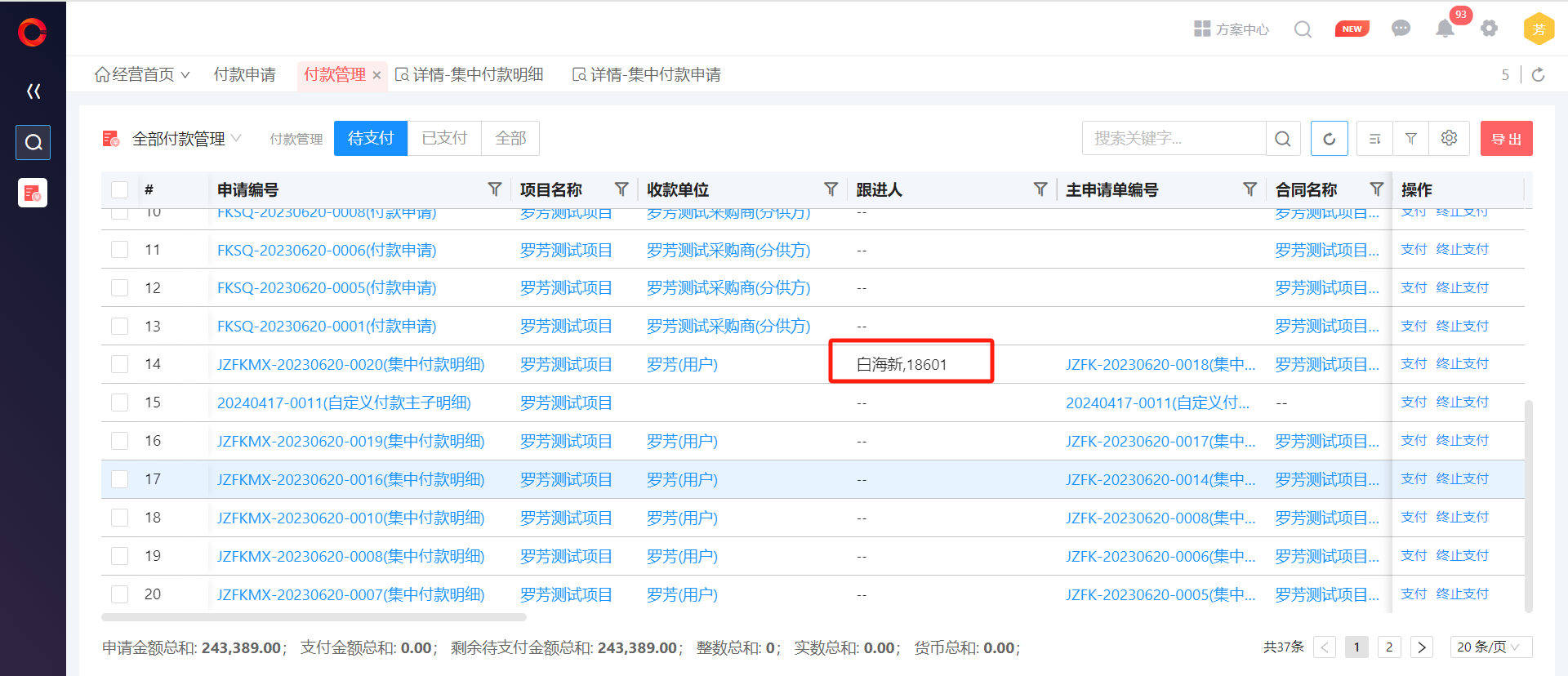 ● 付款管理支持跟進(jìn)人權(quán)限