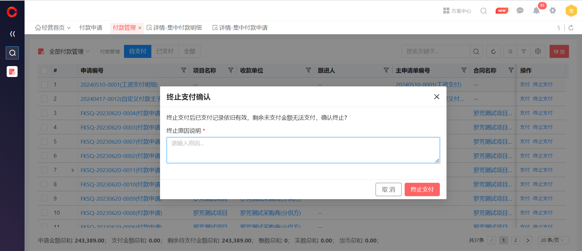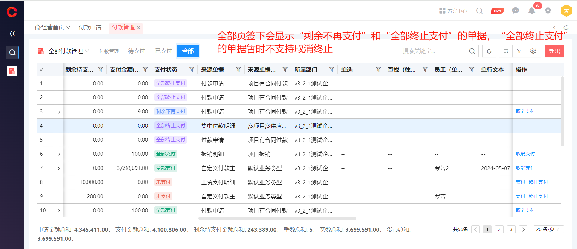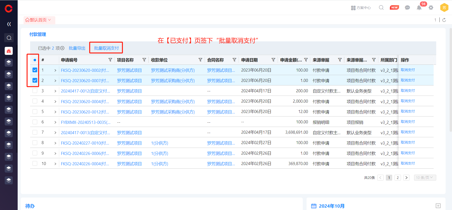 ● 付款管理支持批量取消支付