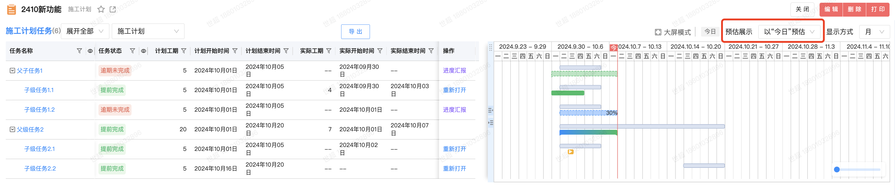 ● 支持以“今日”預(yù)估 任務(wù)進(jìn)展的橫道圖展示