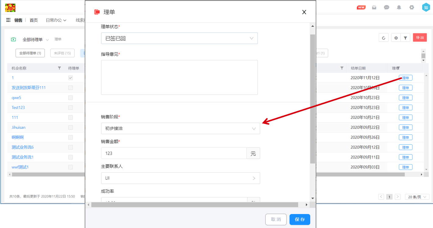 新版的理單功能在理單完成后數(shù)據(jù)不會消失,直接顯示到指定的理單階段,方便管理人員進(jìn)行查看。理單操作不僅限于負(fù)責(zé)人和直屬上級,也可以由其他有權(quán)限的人理單。這樣更高級別的管理人員也可以基于實(shí)際情況對銷售人員進(jìn)行直接的指導(dǎo)。同時,新版本還支持重復(fù)理單,方便管理者對一線銷售人員多次指導(dǎo)。