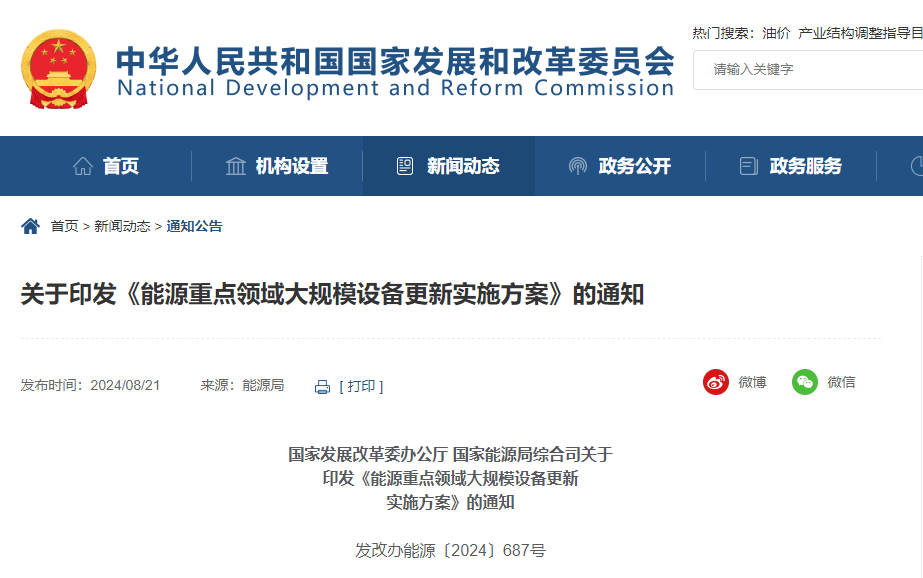 為貫徹落實國務院《推動大規模設備更新和消費品以舊換新行動方案》(國發〔2024〕7號),推動能源重點領域大規模設備更新和技術改造,國家發展改革委、國家能源局組織編制了《能源重點領域大規模設備更新實施方案》。現印發給你們,請認真組織實施。