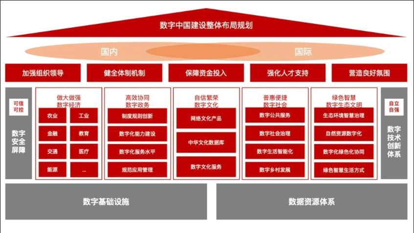目標到2025 年,基本形成橫向打通、縱向貫通、協調有力的一體化推進格局,數字中國建設取得重要進展。到2035年,數字化發展水平進入世界前列,數字中國建設取得重大成就。