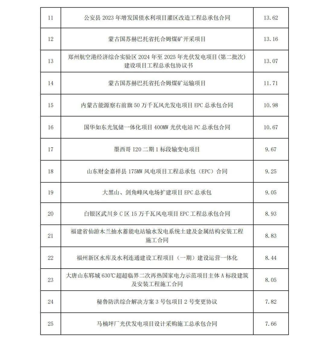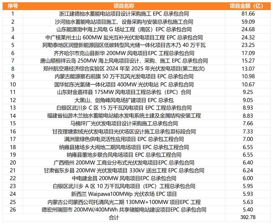 中國電建公布2024年新簽項目,26個涉及風光儲,金額近400億